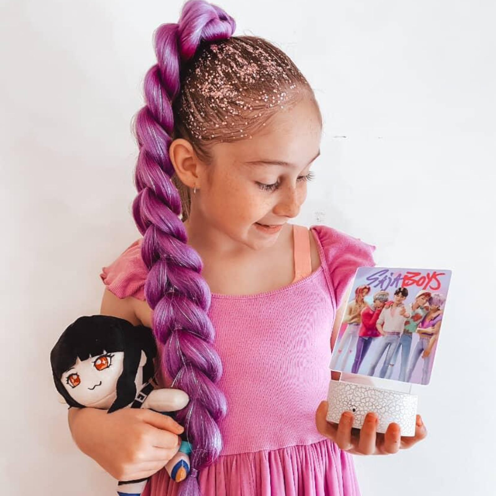 My daughter loved her mermaid sparkle hair. We used the pink and blue sparkles to give her an extra glittery birthday hair style.